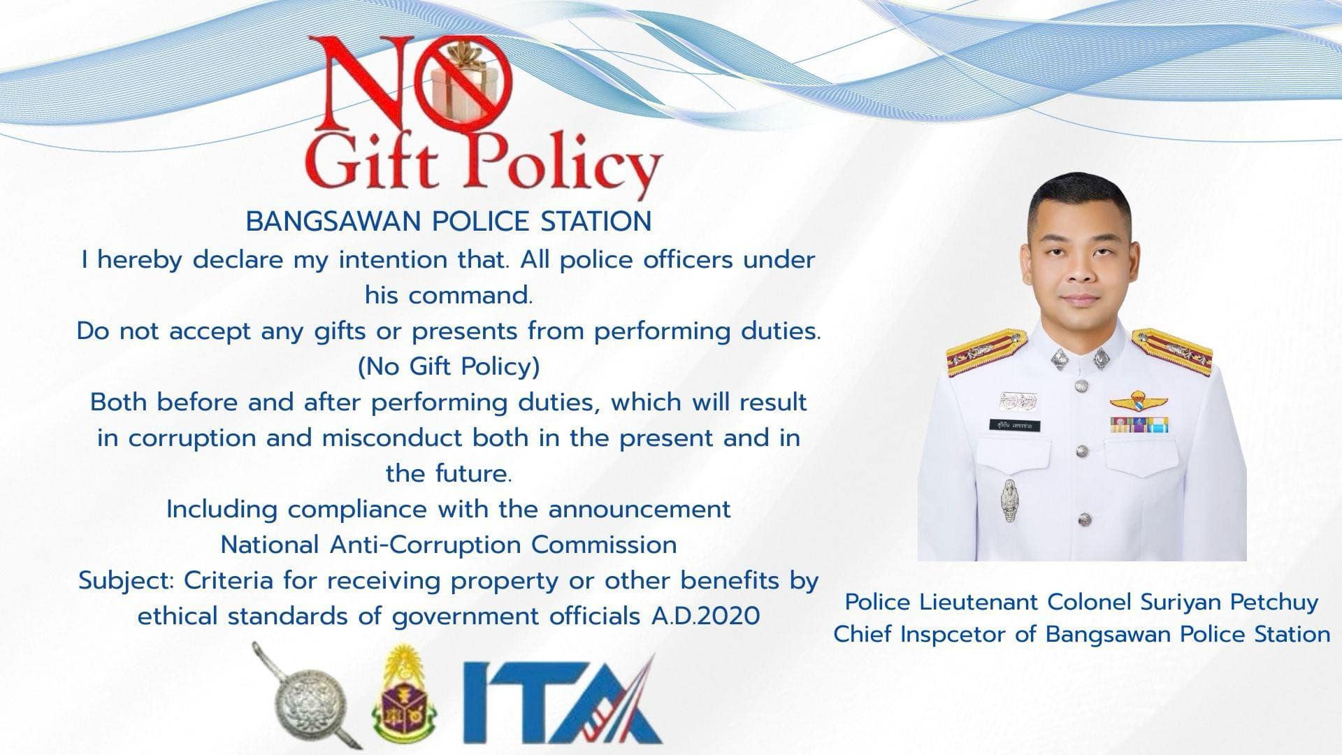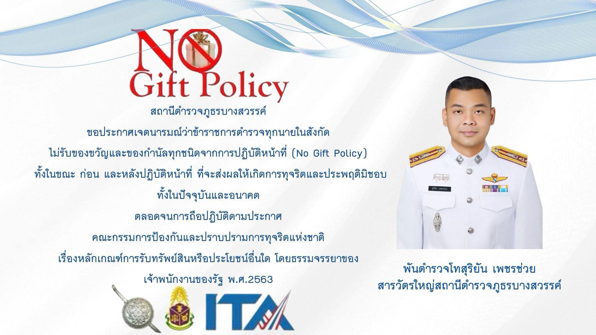 อินโฟกราฟิกไม่รับของขวัญและของกำนันทุกชนิด (No Gift Policy) จากการปฏิบัติหน้าที่